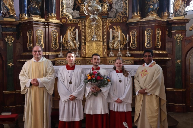 Wie vorher angekündigt hat es auch bei den Oberministranten einen Wechsel gegeben: Philipp Schaller hat sein Amt übergeben an Hannah Haschke und David Jahn. Euch dreien gilt ein ganz besonderer Dank – Philipp für die gute Zusammenarbeit und deinen Einsatz als Obermini über sechs Jahre, Danke! Hannah und David, danke, dass ihr den Dienst als Oberminis übernommen habt! Ihr seid erfahrene Gruppenleiter und werdet die Ministranten in Inningen mit eurem Dienst als Minileiter bereichern.