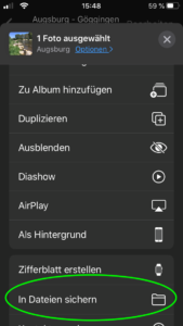 Tippe danach auf den Teilen-Dialog und wähle in der unteren Zeile „In Dateien sichern“ aus.