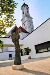 Und: der Neubau ist schön. Die Architektur des Hauses ist brillant, sie fügt sich wunderbar in die Umgebung ein und wertet Göggingen in seinem Herzen auf. Hell und lichtdurchflutet ist die Fassade, die Menschen, die hier ein- und ausgehen, werden sich wohlfühlen. Zwischen dem Roncallihaus, dem alten Gögginger Schulhaus und unserer Kirche entsteht ein offener Platz. Angenehm für das Auge, einladend zum Verweilen, inspirierend für Begegnungen.